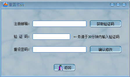 如果系统内部能检索到该邮箱号,软件将会向你的邮箱发送一份带验证码的电子邮件。请不要关闭当前的窗口,并于30分钟内填写收到的验证码。